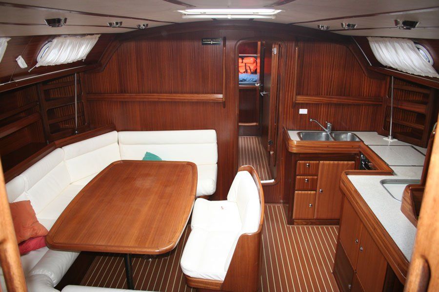 è una barca a vela di oltre 15 metri, con 5 cabine, 3 bagni, spaziosa e confortevole, adatta anche ai bambini.